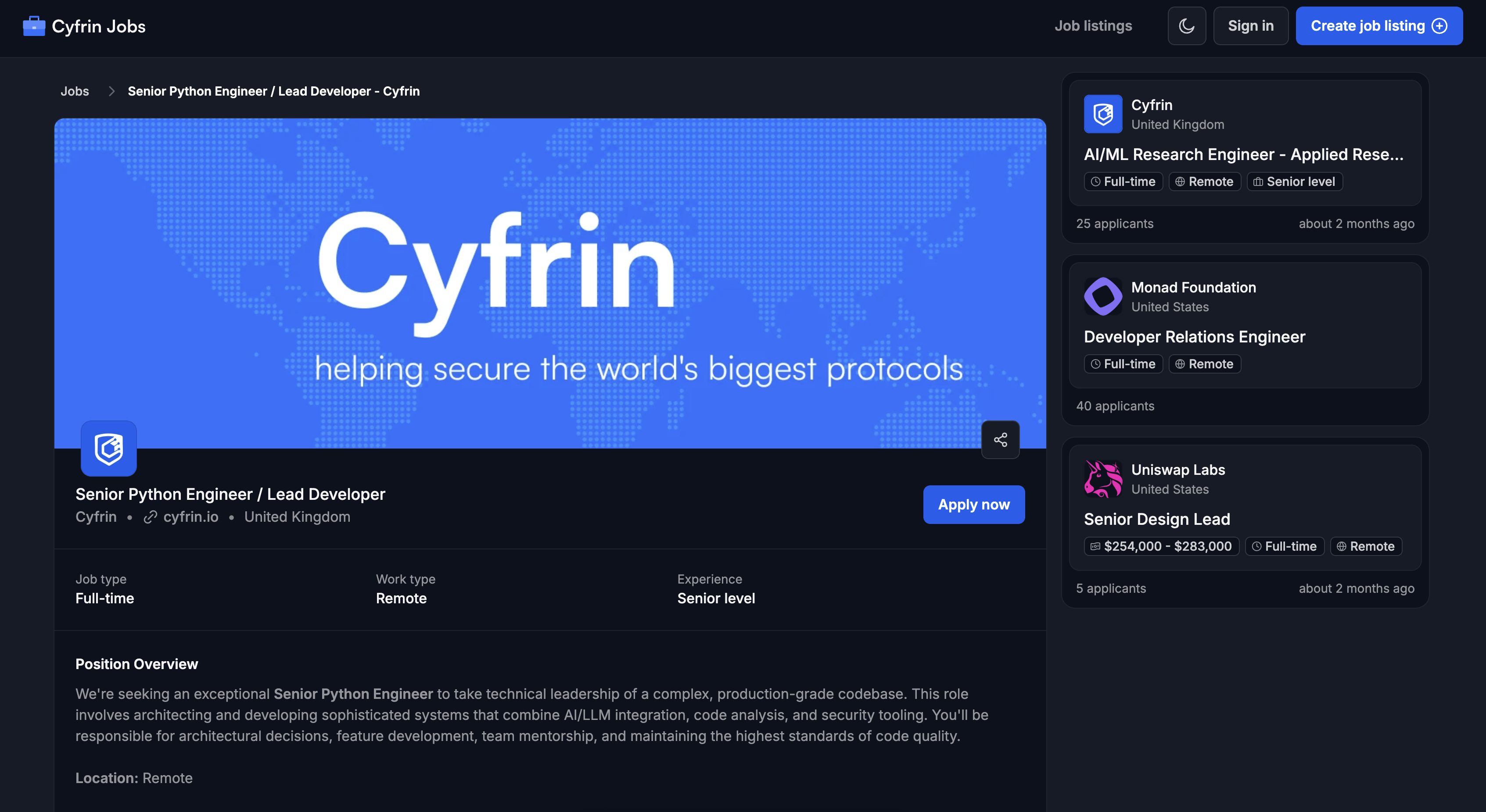 Back project October 2, 2025 Jobs Board Developed jobs board with AI candidate screening and external integrations. Next On-Chain User Profiles